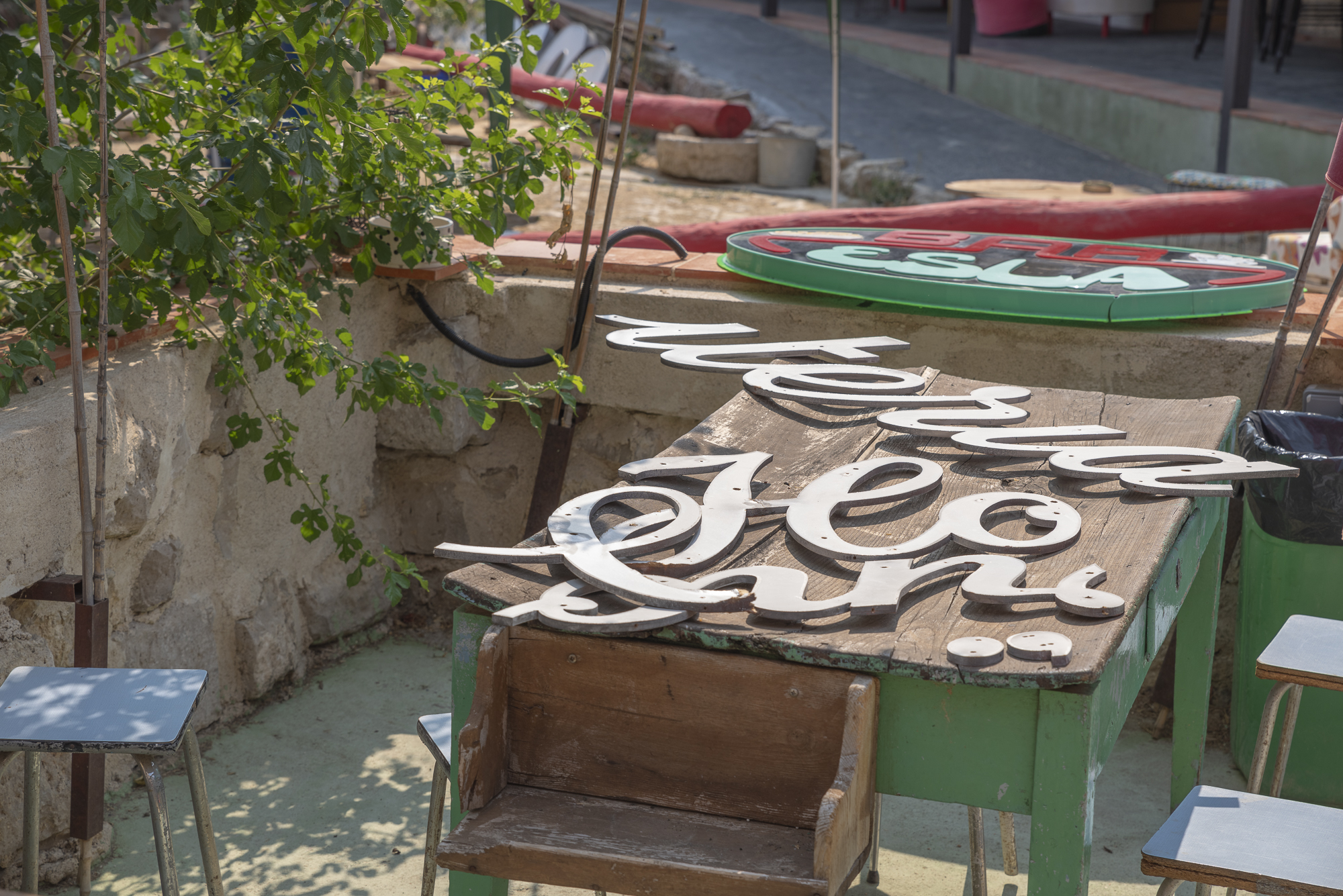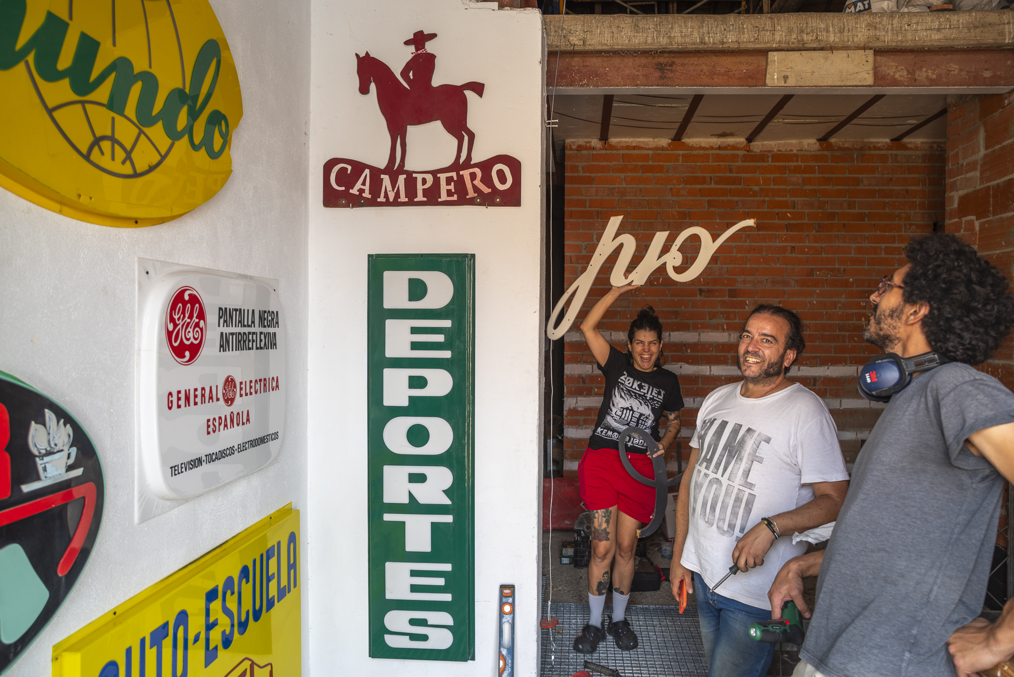 Disponemos de un almacén donde guardamos nuestra colección de rótulos rescatados. Allí los catalogamos y los archivamos con una ficha en la que describimos los materiales, estilos tipográficos y geolocalización, con una fotografía de su ubicación original.